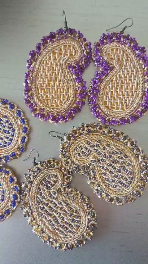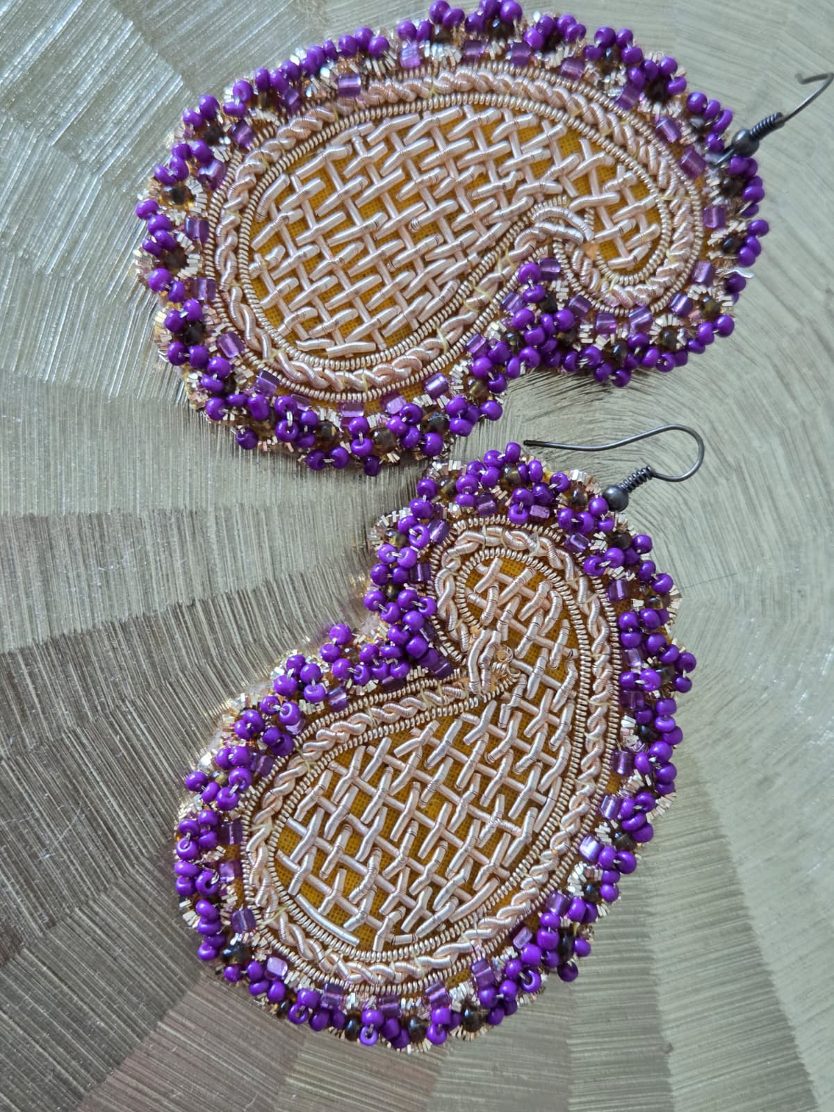 Paisley (Boteh Jegheh) Earrings – Violet beads & Gold broidery