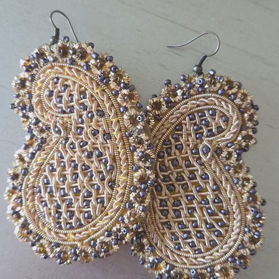 Paisley (Boteh Jegheh) Earrings – Gray beads & Gold broidery