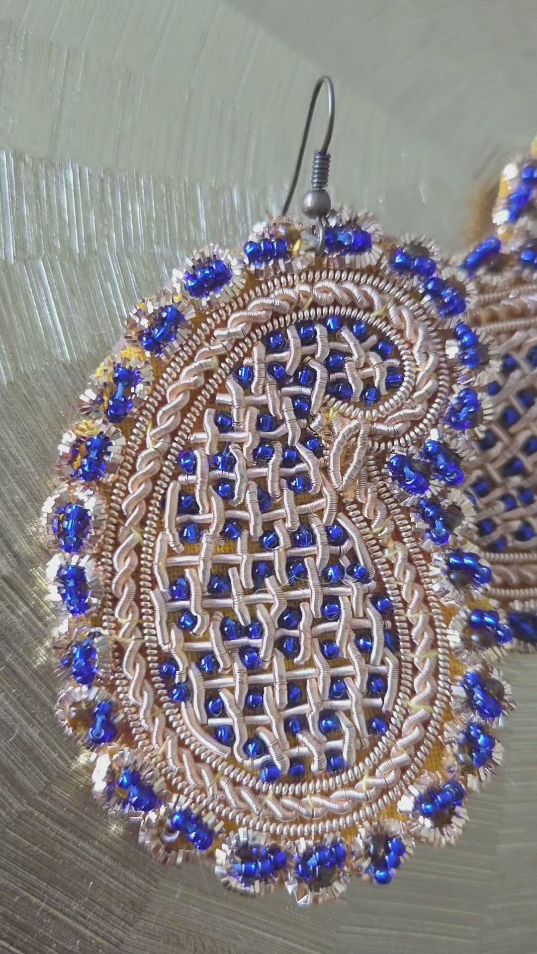 Paisley (Boteh Jegheh) Earrings – Blue beads & Gold broidery