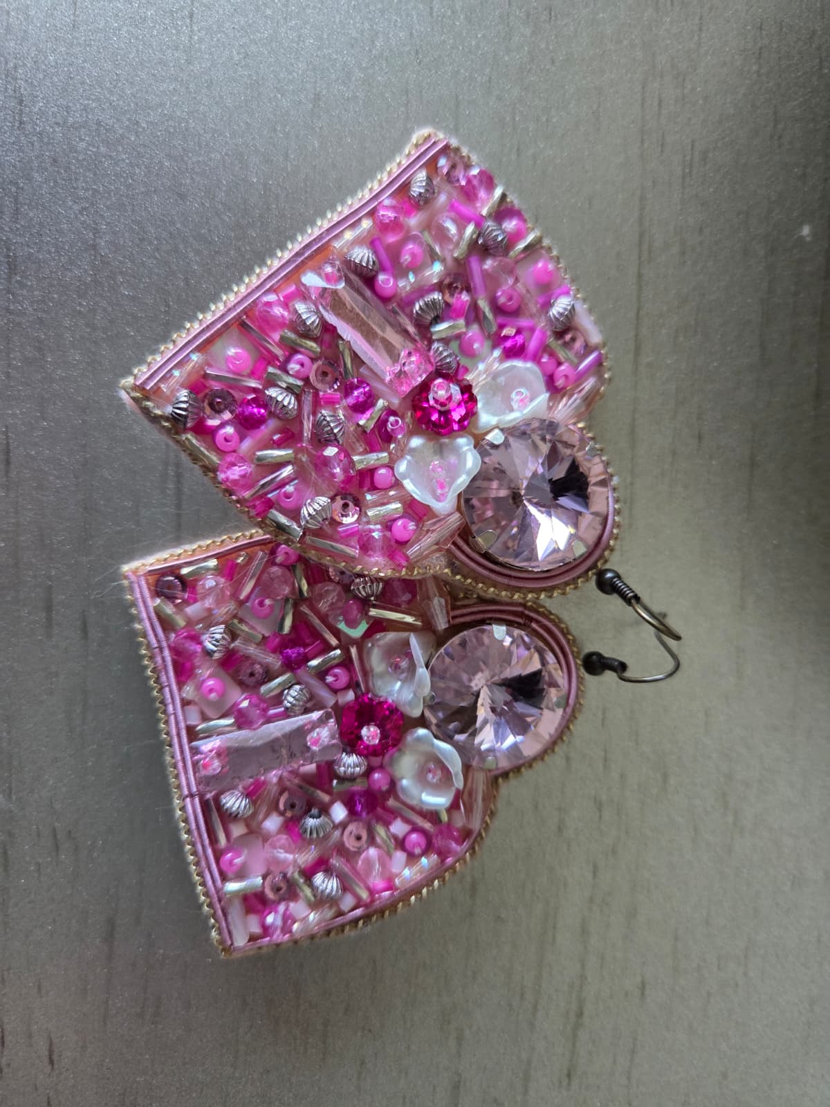 Handmade earrings inspired by the beauty of the rose. Designed with a genuine Swarovski crystal, sequins, Miyuki beads, and silver accents. A unique statement piece that blends elegance, romance, and luxury.